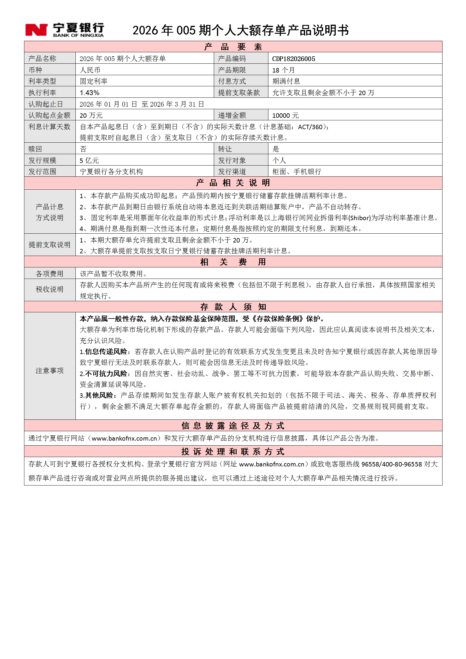 2026年第005期个人大额存单